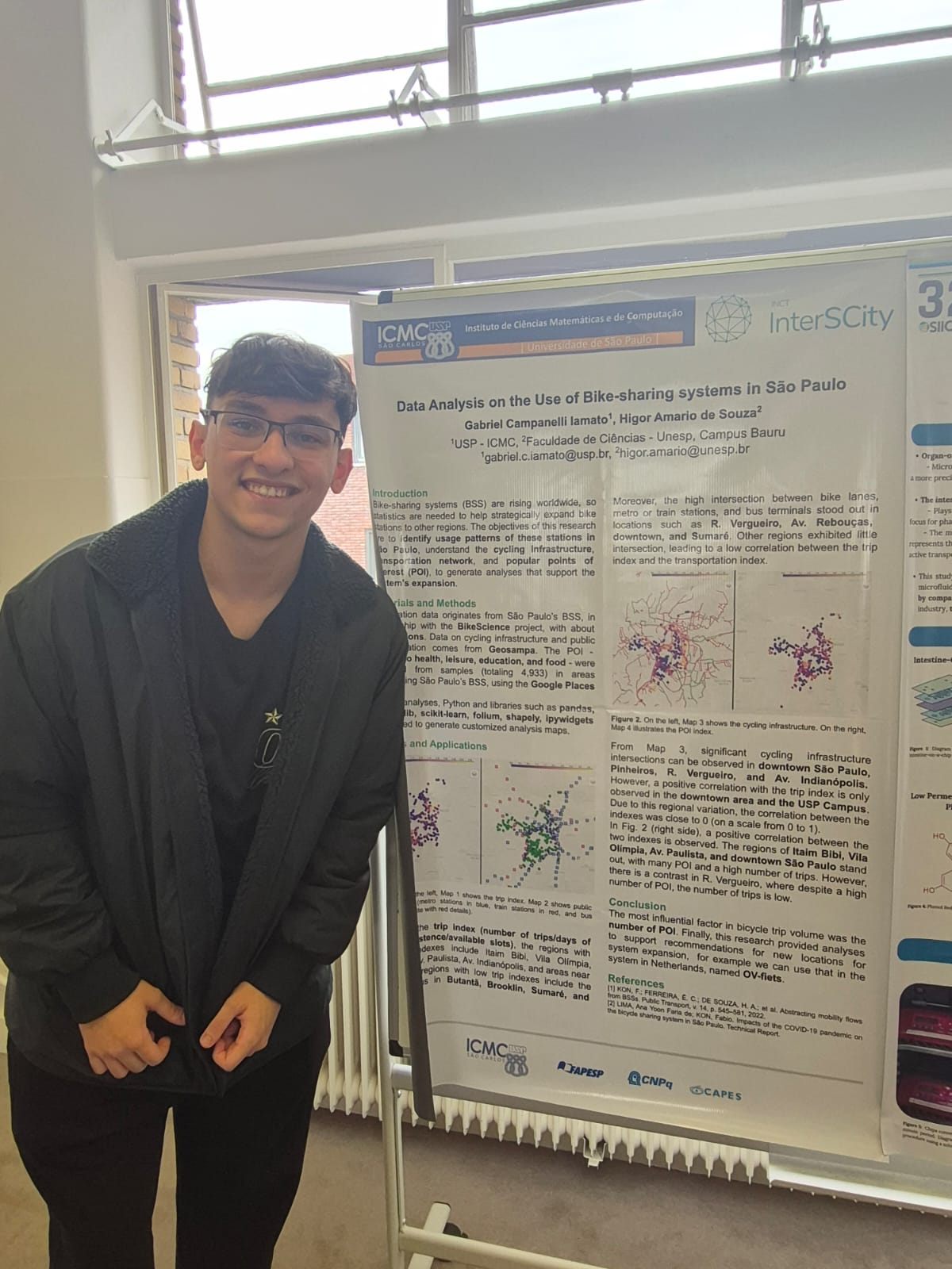 Uma pesquisa de iniciação científica sobre o sistema de bicicletas compartilhadas em São Paulo levou o estudante Gabriel Campanelli Iamato, do curso de Bacharelado em Ciência de Dados do Instituto de Ciências Matemáticas e de Computação (ICMC) da USP, em São Carlos, a apresentar seu trabalho na Holanda. Ele foi um dos cinco alunos da Universidade selecionados para participar do Project Presentation Day, realizado dia 16 de junho na University College Groningen (UCG), no norte do país.