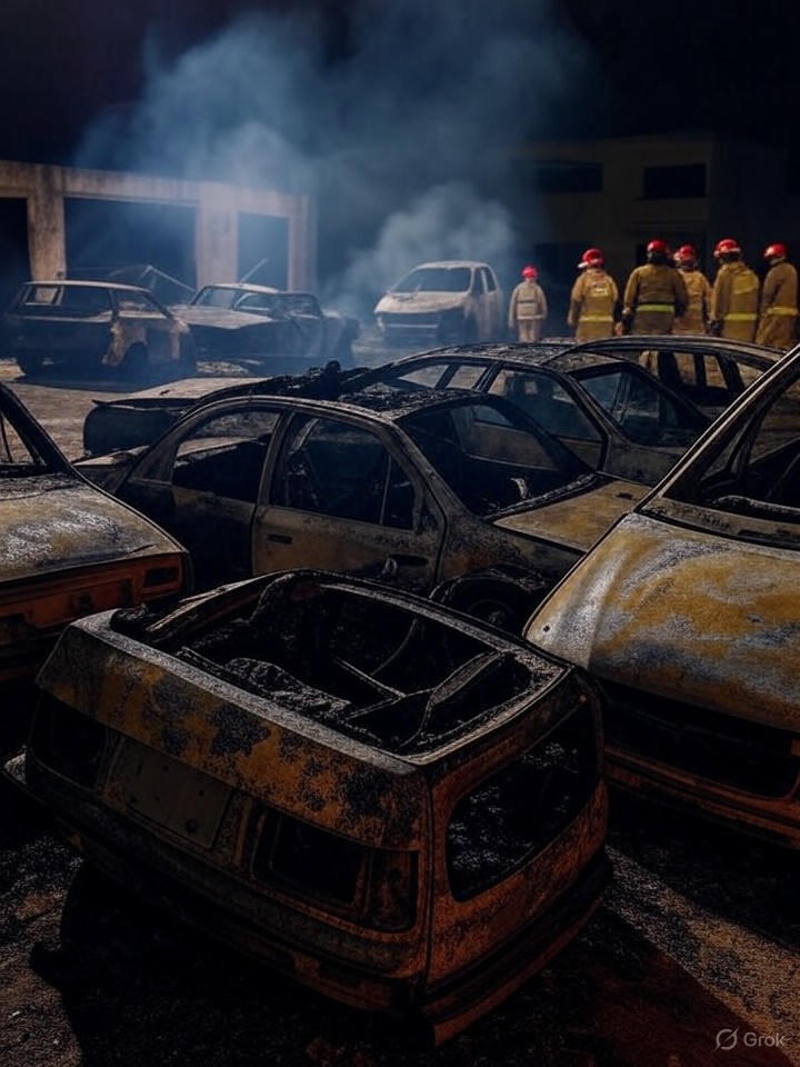 Após uma avaliação inicial dos riscos, os bombeiros estabeleceram linhas de combate e conseguiram extinguir as chamas, evitando que se propagassem para outros veículos próximos. No total, cinco carros foram atingidos pelo incêndio, deixando-os completamente destruídos.