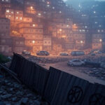 Fachada da CLDF em Brasília com berço vazio e documentos espalhados, simbolizando suporte pós-parto e falhas no sistema de saúde.