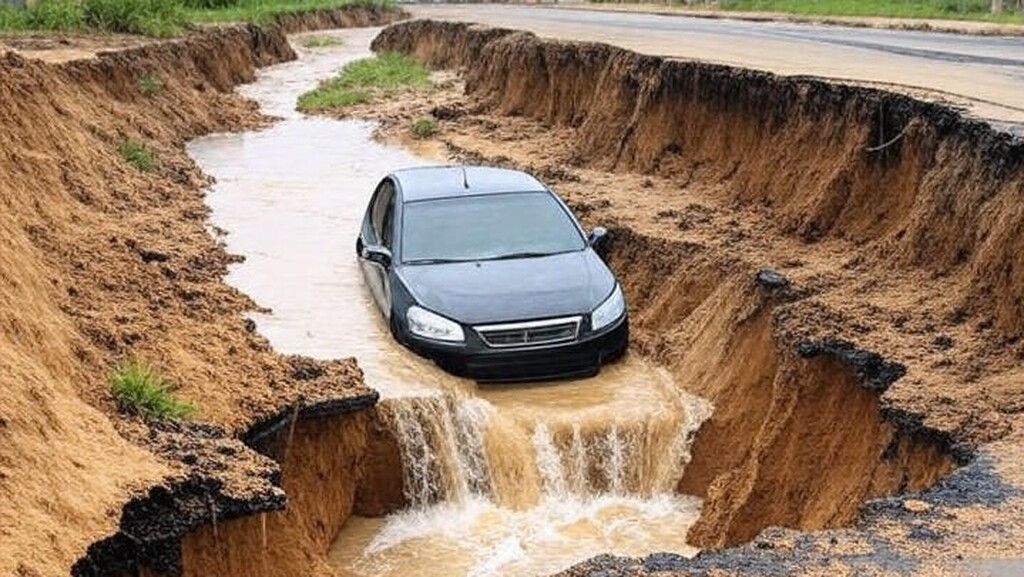Um entregador viveu momentos de tensão na tarde de domingo (3/11) quando o carro que dirigia foi engolido por uma erosão oculta sob o asfalto na região de Arniqueira, no Distrito Federal. O incidente ocorreu por volta das 16h30 na SHA Chácara 65, em frente ao lote 14, próximo a um córrego. Roberto José Feitosa, de 28 anos e morador do Riacho Fundo II, realizava uma entrega no momento em que manobrou o veículo e o chão cedeu repentinamente. Apesar de o asfalto aparentar normalidade, um buraco extenso se formava por baixo, levando o carro a afundar.