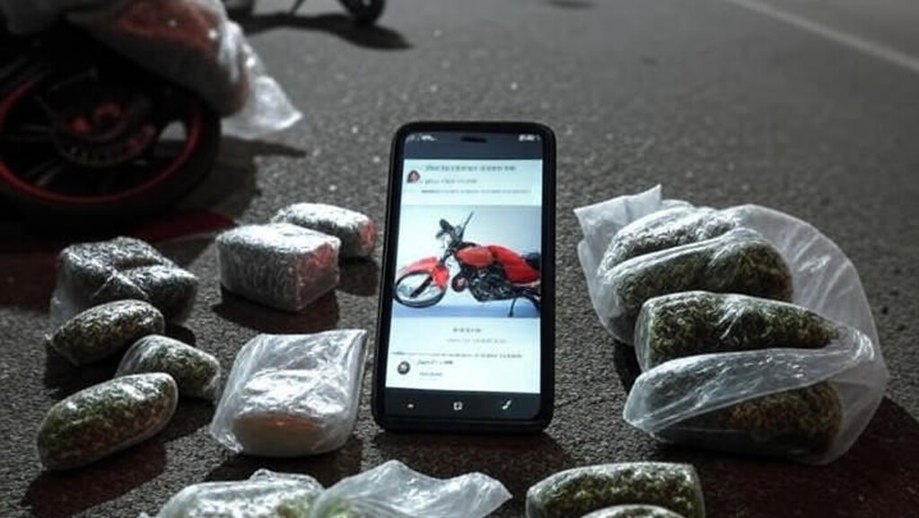 Durante a operação, o grupo tentou fugir e descartar uma sacola com maconha, cocaína e crack, levando à suspeita de tráfico de drogas. O adolescente admitiu saber que a moto era furtada, embora negasse participação no furto, e confessou envolvimento em um roubo a uma loja de celulares ocorrido em 30 de outubro, onde dois indivíduos armados subtraíram aparelhos avaliados em R$ 8 mil. Câmeras de segurança registraram a ação, e a polícia localizou a moto em uma área de mata às margens da Rodovia Abrão Assed, com base em informações do suspeito.