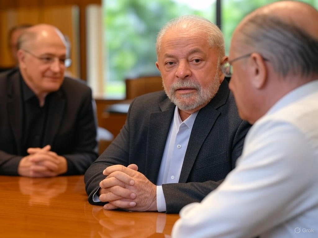 Em reunião no Palácio do Alvorada, o presidente Luiz Inácio Lula da Silva e o vice-presidente Geraldo Alckmin discutiram com ministros do...
